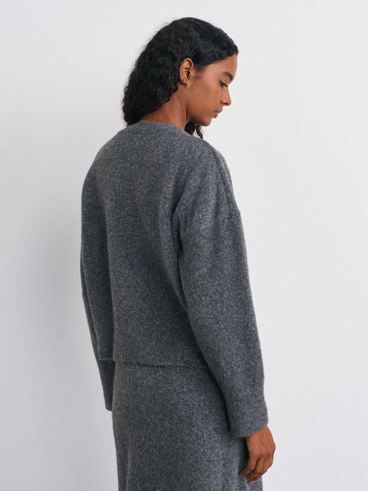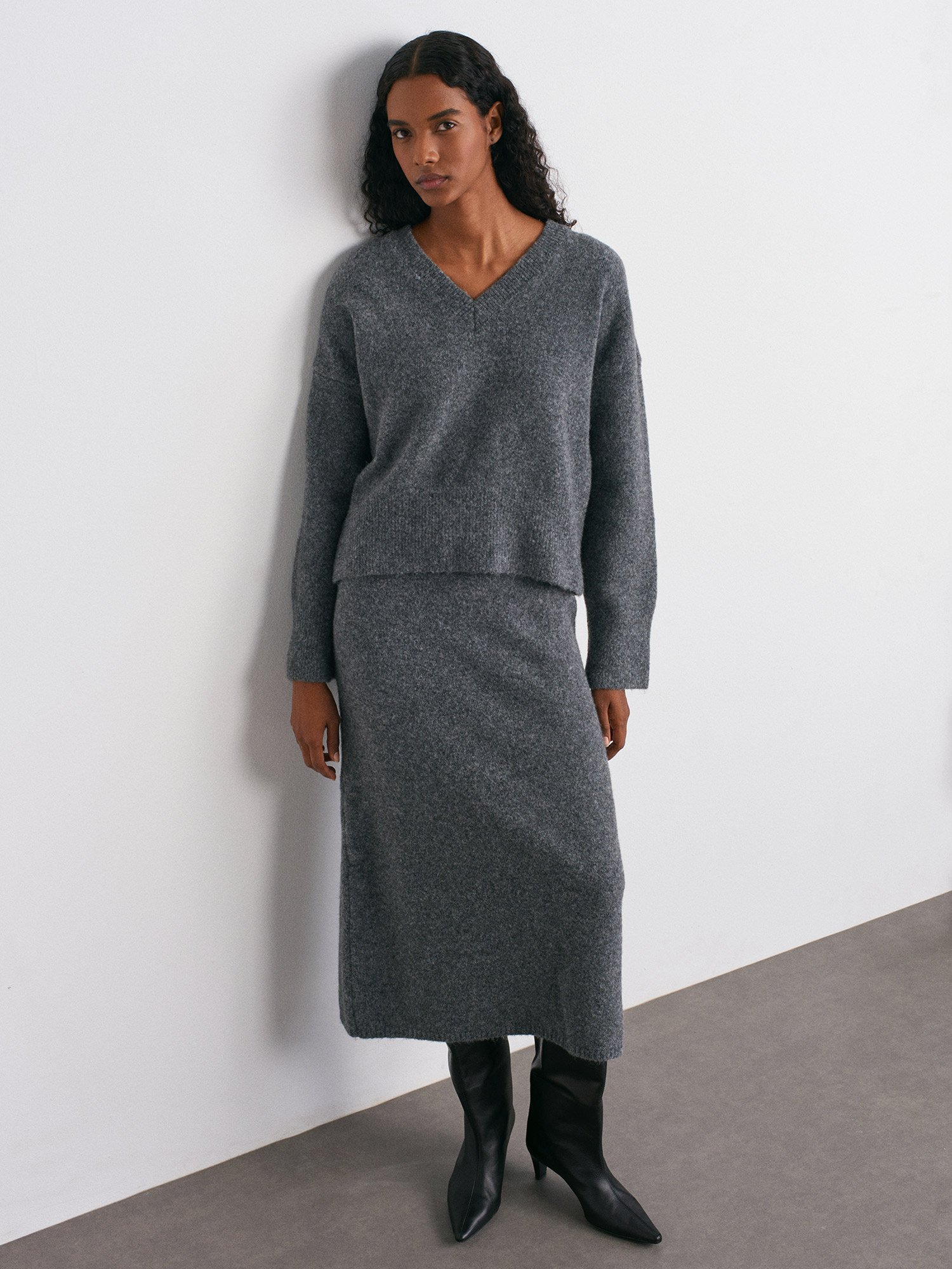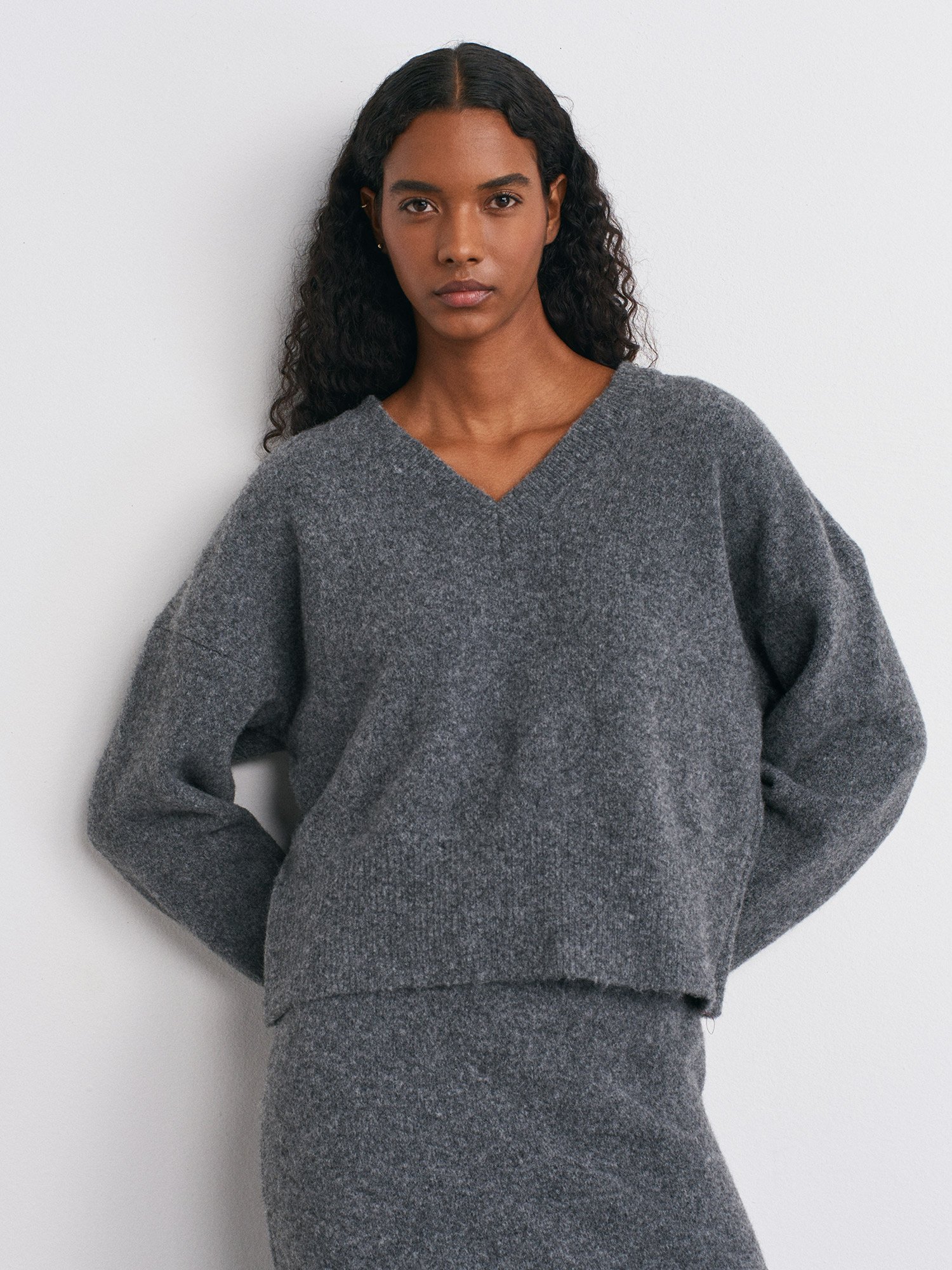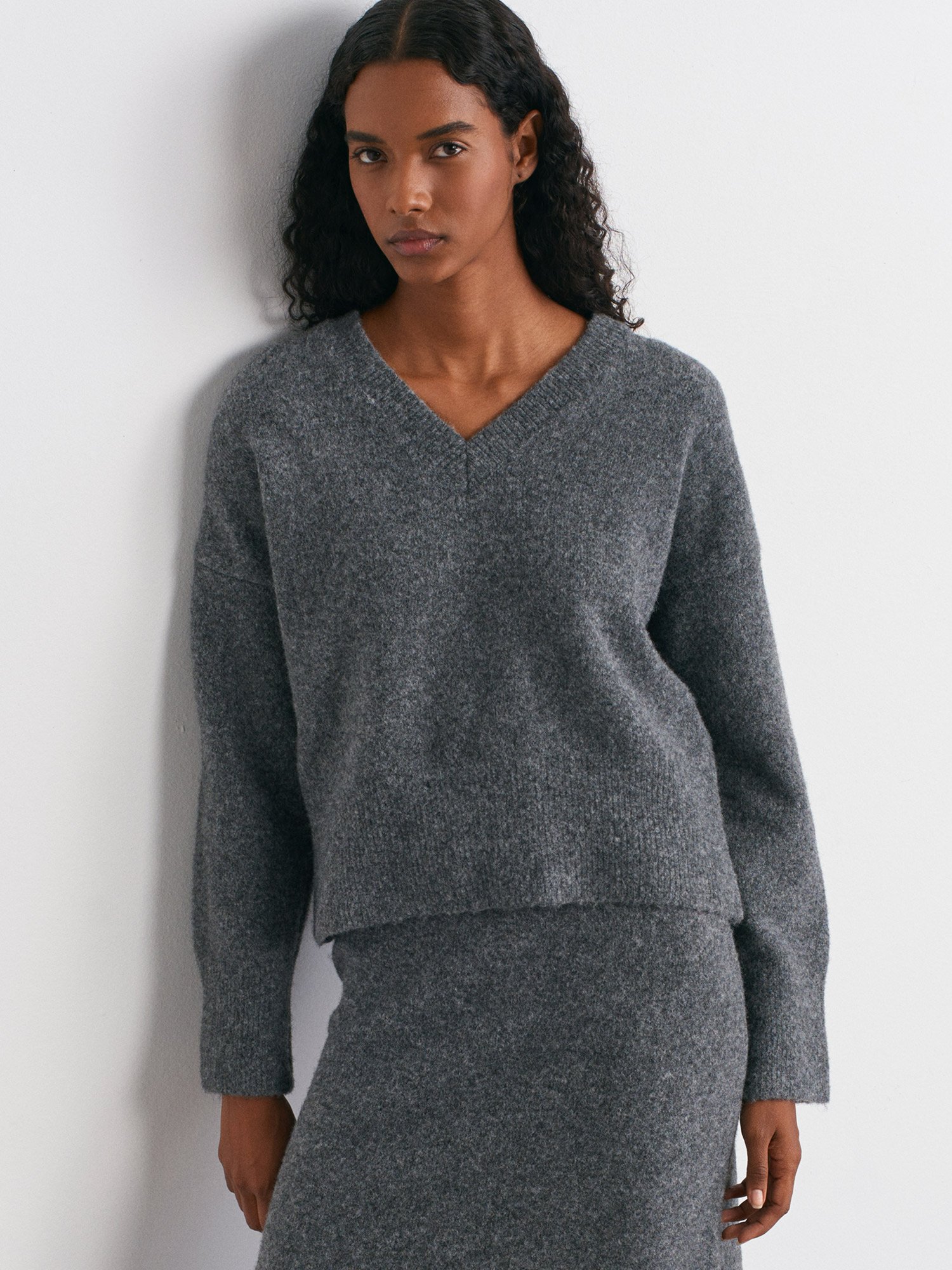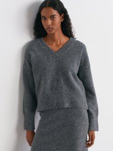 V Yaka Yün Karışımlı Triko Kazak-K.Füme