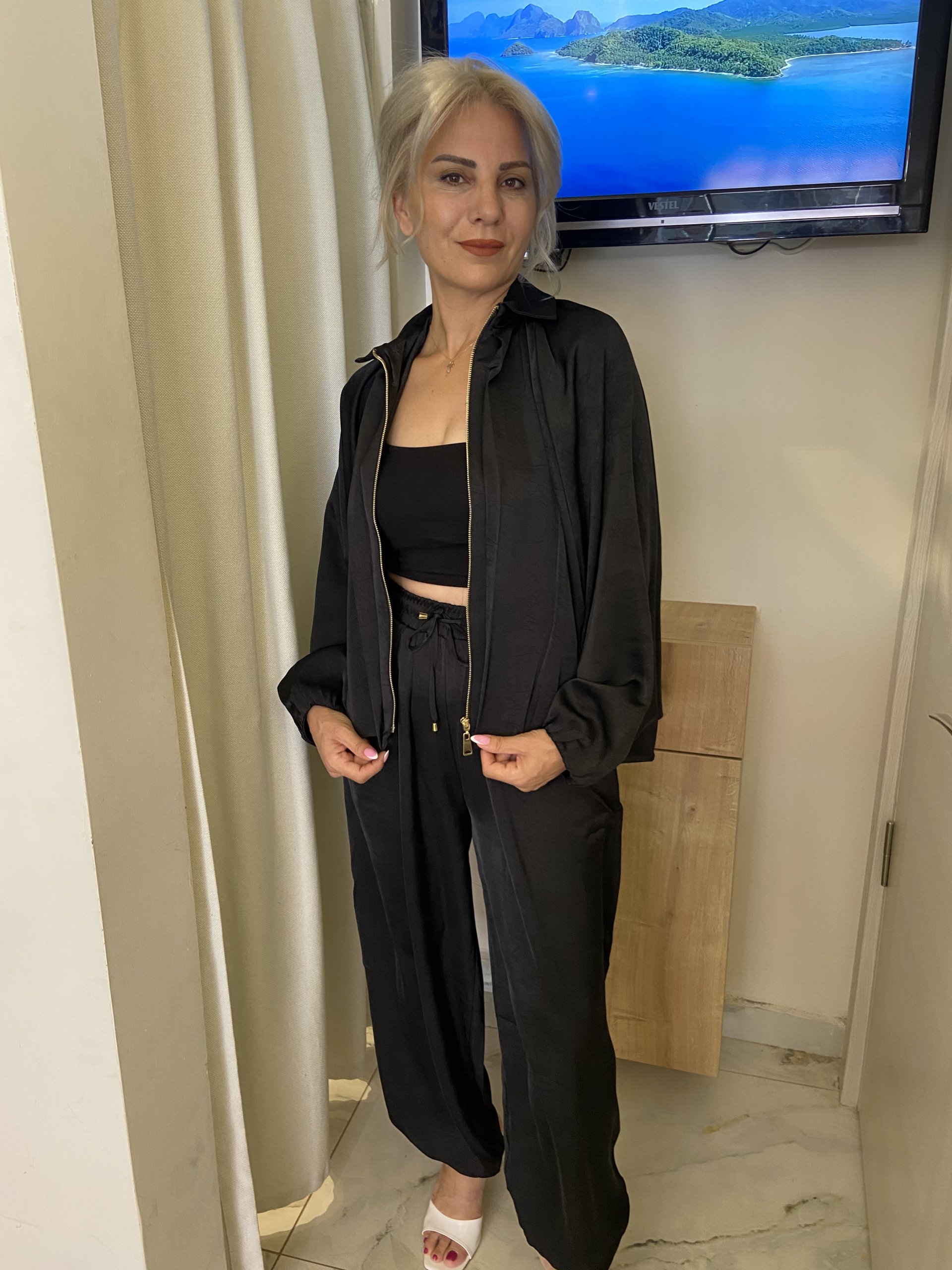 Pantolonumuz rahat kalıptır, tam bedenimizi alabiliriz.